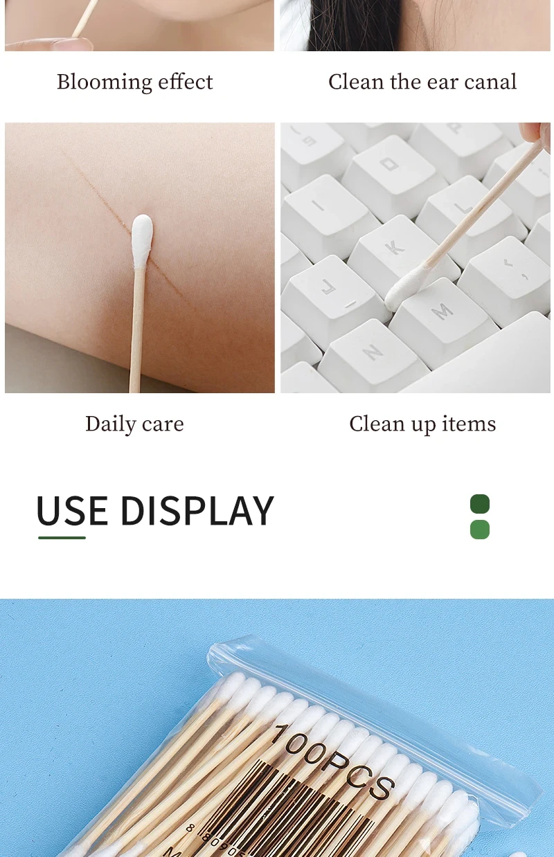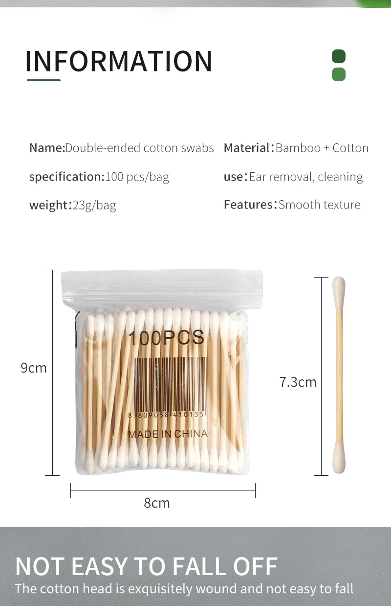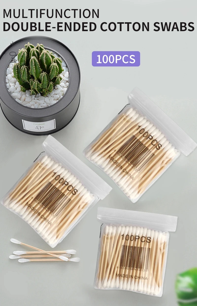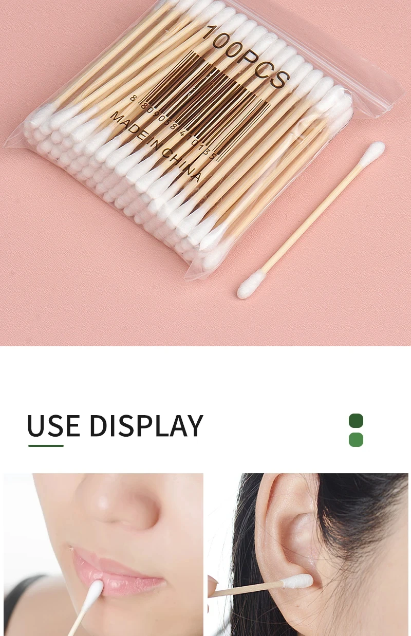item:100/500 Count Cotton Swabs Double Pointed Cotton Buds Precision Tips With Bamboo Sticks For Personal Nail Art Makeup Tools